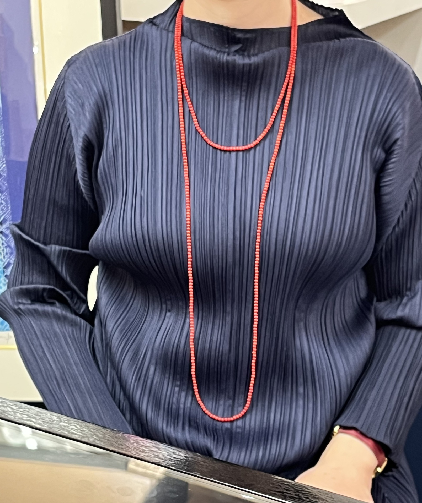 愛犬Pのよだれで少しクタッとしてきた頃、「もう少し良くなったら、細くて軽くて長い赤い珊瑚のネックレスを買おう✨」と思うようになり、ここ数年探していたのだが、なかなか見つからなかった。